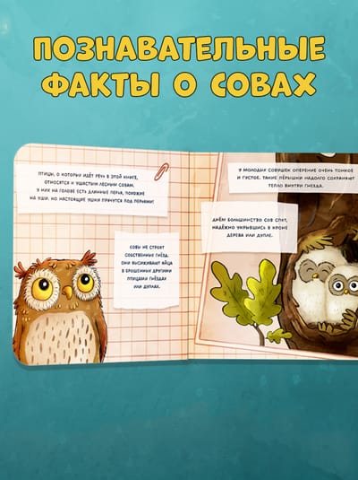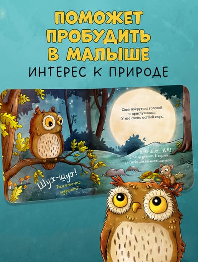 В конце книжки есть познавательный разворот с интересными фактами о совах: что они делают днем, где живут, как выглядят их птенцы? «Совушка в лесу. Первая книга малыша о природе» из прочного картона с закругленными уголками создана специально для маленьких детских ручек. Книжка-картонка станет вашим верным спутником дома, на прогулке и в путешествии!