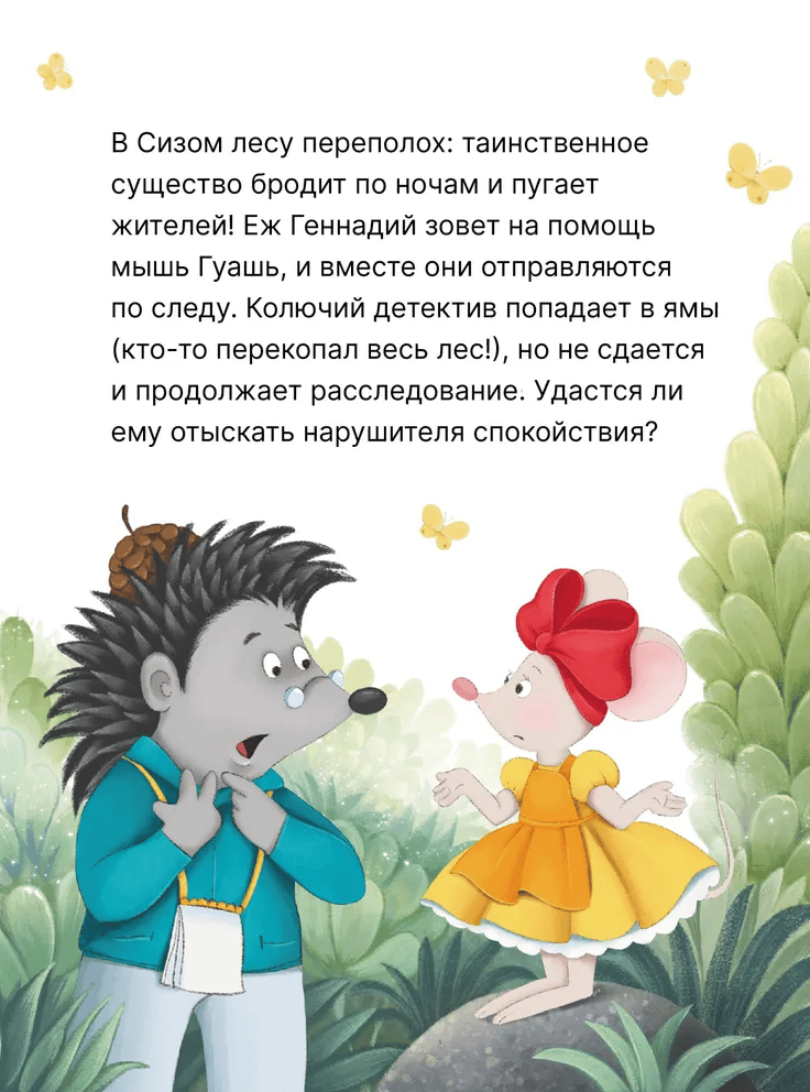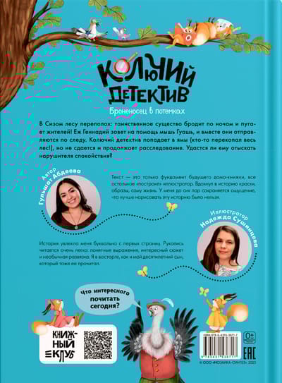 Книга «Колючий детектив. Броненосец в потемках» серии «Книжный клуб. Почитаем вместе?» — про неутомимого детектива ежа по имени Геннадий и его напарницу мышь Гуашь. История, наполненная загадками, лихими сюжетными поворотами и юмором.