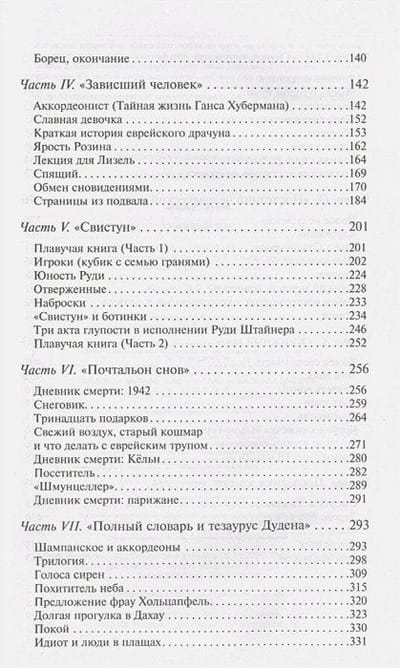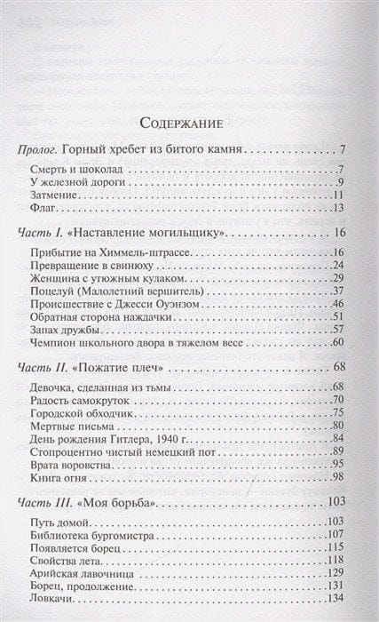 Мать везет девятилетнюю Лизель Мемингер и ее младшего брата к приемным родителям под Мюнхен, потому что их отца больше нет – его унесло дыханием чужого и странного слова «коммунист», и в глазах матери девочка видит страх перед такой же судьбой. В дороге смерть навещает мальчика и впервые замечает Лизель. Так девочка оказывается на Химмель-штрассе – Небесной улице. Кто бы ни придумал это название, у него имелось здоровое чувство юмора. Не то чтобы там была сущая преисподняя. Нет. Но и никак не рай.