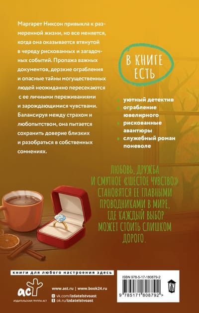Маргарет Никсон привыкла к размеренной жизни, но все меняется, когда она оказывается втянутой в череду рискованных и загадочных событий. Пропажа важных документов, дерзкие ограбления и опасные тайны могущественных людей неожиданно пересекаются с ее личными переживаниями и зарождающимися чувствами.