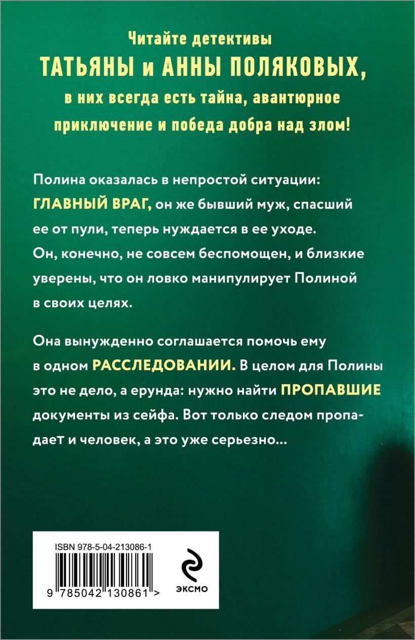 Полина оказалась в непростой ситуации: главный враг, по совместительству бывший муж, спасший ее от пули, теперь сам нуждается в помощи. Забелин, конечно, не совсем слаб, близкие даже уверены, что он ловко манипулирует Полиной в своих целях. И все-таки она соглашается помочь ему в одном расследовании. В целом, для Полины такое дело — сущая ерунда: нужно найти пропавшие из сейфа документы. Вот только следом исчезает человек, а это уже серьезно...