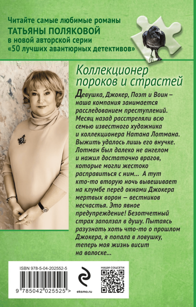 Девушка, Джокер, Поэт и Воин — наша маленькая компания занимается расследованием преступлений. К нам часто обращаются люди, разочарованные работой полиции. Так произошло и на этот раз. Месяц назад расстреляли семью известного художника и коллекционера Натана Лотмана. Выжить удалось лишь внучке Надежде. Теперь мы дружно ломаем голову: кто и за что так жестоко расправился с этими людьми? Опросили друзей и знакомых убитых, и стало ясно: Лотман был далеко не ангелом и вполне мог нажить себе врагов. А тут кто-то вторую ночь вывешивает на клумбе перед окнами Максимильяна Бергмана, он же Джокер, мертвых ворон. Ворон — вестник несчастья. Это явное предупреждение! Но о чем? Безотчетный страх заползал в душу. Пытаясь разузнать хоть что-то о прошлом Джокера, я попала в ловушку, теперь моя жизнь висит на волоске…