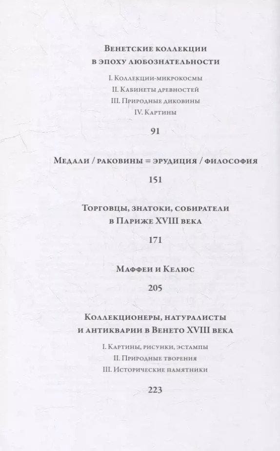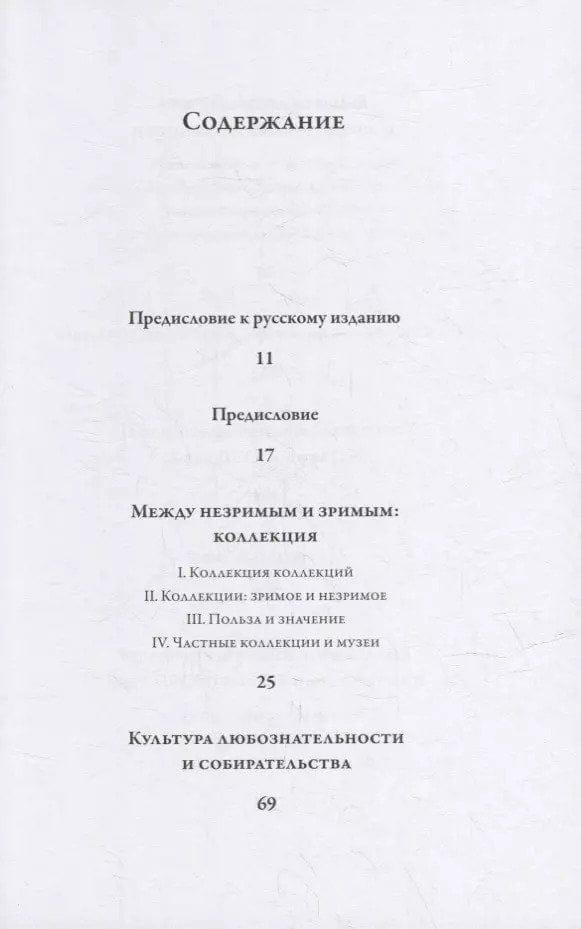 Польский и французский историк Кшиштоф Помян (р. 1934) посвятил свою многолетнюю творческую деятельность исследованию концепций памяти и истории, в которых значения тех или иных предметов всегда играли ведущую роль. Настоящая книга, составленная из очерков 1970-1980-х годов, была впервые опубликована во Франции в 1987 году и сразу же стала основополагающей для изучения истории коллекционирования, задав те фактические и теоретические рамки, в которых вели свою работу несколько последующих поколений ученых. Помян не признает принятых сегодня границ между собиранием произведений «изящных искусств» с одной стороны и прочих объектов — с другой, рисуя общую картину европейского коллекционирования с XVI по XVIII столетие. Он демонстрирует междисциплинарный характер истории коллекционирования, неразрывно переплетенной не только с историей искусства, науки, общества и политики, но и с антропологией, социологией и вопросами ценности и значимости в контексте различных экономических и социальных структур.