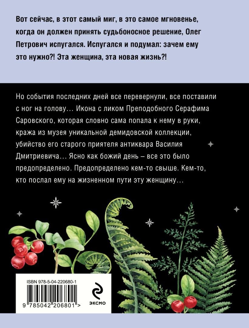 Вот сейчас, в этот самый миг, в это самое мгновенье, когда он должен принять судьбоносное решение, Олег Петрович испугался. Испугался и подумал: зачем ему это нужно?! Эта женщина, эта новая жизнь?! Но события последних дней все перевернули, все поставили с ног на голову… Икона с ликом Преподобного Серафима Саровского, которая словно сама попала к нему в руки, кража из музея уникальной демидовской коллекции, убийство его старого приятеля, антиквара Василия Дмитриевича… Ясно как божий день — все это было предопределено. Предопределено кем-то свыше. Кем-то, кто послал ему на жизненном пути эту женщину…