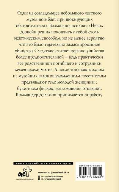 Один из совладельцев небольшого частного музея погибает при шокирующих обстоятельствах. Возможно, психиатр Невил Дюпейн решил покончить с собой столь экзотическим способом, но не менее вероятно, что это было тщательно замаскированное убийство. Следствие считает версию убийства более предпочтительной – ведь практически все родственники погибшего и сотрудники музея имели мотив. А после того, как в одном из музейных залов ошеломленным посетителям предъявляют тело молодой женщины с букетиком фиалок, все сомнения отпадают. Коммандер Дэлглиш принимается за работу.