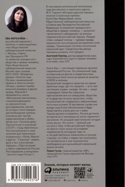 Автор фиксирует состояние и положение дел в российской тюрьме на период 2022 года. Условия содержания заключенных, тюремная медицина, питание, режим, обстановка в камерах, свидания, этапирование и многие другие подробности из жизни арестантов описывает в своей новой книге известный правозащитник и журналист Ева Меркачёва.