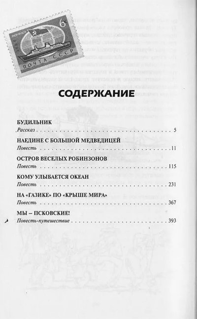 В том собрания сочинений Владимира Санина вошли самые ранние произведения писателя – юмористические повести и рассказы, а также веселые повести-путешествия: «Кому улыбается океан» — о плавании на рыболовном траулере по Красному морю и Индийскому океану, «На «‎газике»‎ по «‎крыше мира» — о покорении Памира и «Мы — псковские!» — о путешествии с семьей по Псковской области на телеге с лошадью. Уже эти ранние произведения пронизаны столь полюбившимся читателю мягким юмором и иронией, отличающими неповторимый стиль автора.