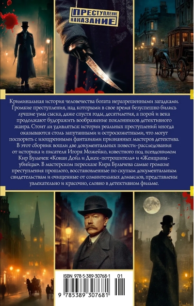 В этот сборник вошли две документальные повести-расследования от историка и писателя Игоря Можейко, известного под псевдонимом Кир Булычев: «Конан Дойл и Джек-потрошитель» и «Женщины-убийцы». В мастерском пересказе Кира Булычева самые громкие преступления прошлого, восстановленные по скупым документальным свидетельствам и очищенные от сомнительных домыслов, представлены увлекательно и красочно, словно в детективном фильме.