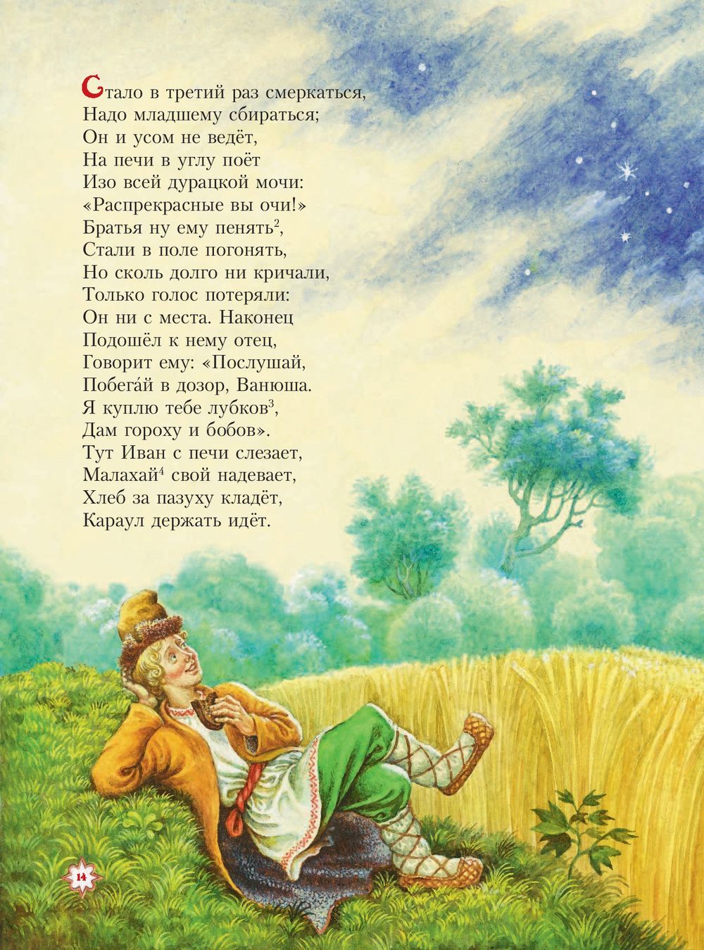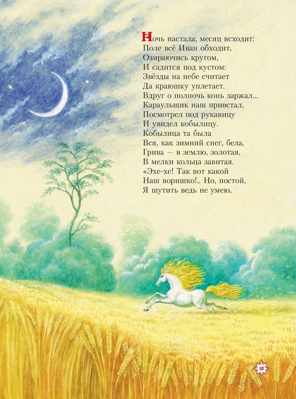 Сказка в стихах "Конек-горбунок" входит в сокровищницу русских детских сказок. На ее страницах ожмивают все самые известные персонажи — Иванушка, Жар - птица, глупый царь, Царь-девица, Чудо-юдорыба-Кит и другие.