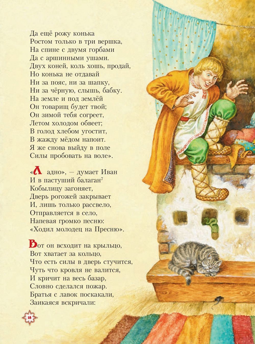 Отрывки из "Конька-горбунка" может и сейчас процитировать любой взрослый. А перечитать эту зарифмованную сказку вместе с малышом – особенное удовольствие. Классика русской детской литературы. Забавная, написанная великолепным языком, увлекательная сказка чудесно проиллюстрирована Игорем Егуновым в лучших традициях отечественной книжной иллюстрации.