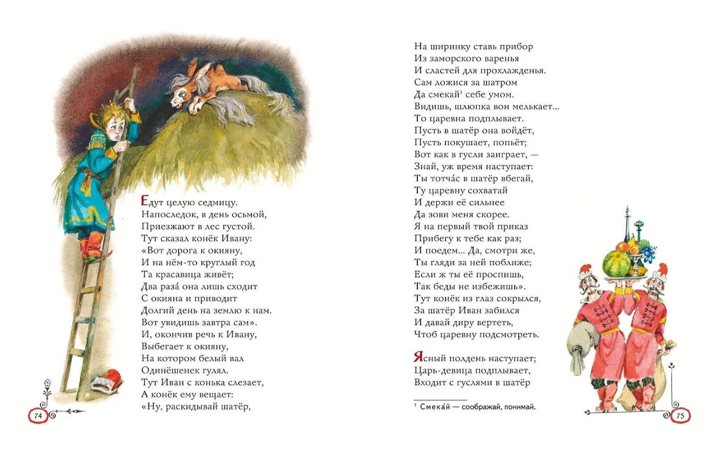 Замечательная поэтическая сказка Петра Павловича Ершова «Конёк-горбунок» приглашает читателей совершить увлекательное путешествие по волшебным царствам и мирам и пережить множество необыкновенных приключений. Звонкие, легко запоминающиеся строчки расскажут о традиционном герое русского фольклора — простодушном Иванушке и о его верном друге, чудесном коньке-горбунке. А тонкие, изящные и точные иллюстрации известного мастера, народного художника России Анатолия Елисеева помогут познакомиться поближе с диковинными существами и подробно рассмотреть все детали необыкновенных странствий.