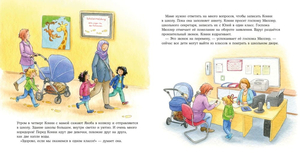 Школа — совершенно новый этап в жизни ребёнка и его родителей. Какой будет первая учительница, станут ли друзьями одноклассники, будет ли интересно и уютно в школе? Все эти вопросы очень волнительные. Вот и Конни идёт "первый раз в первый класс". Вместе с ней ваш ребёнок узнает, каким может быть знакомство со школой и что понадобится для учёбы, и поймёт, что школа — это здорово!