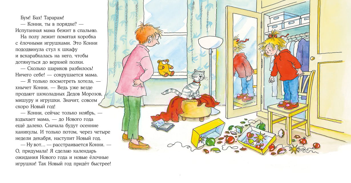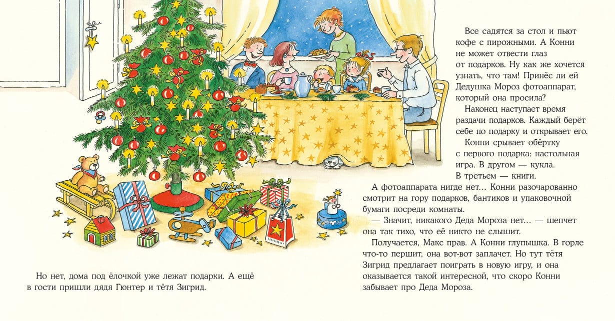 Все дети с нетерпением ждут Новый год. Ведь это самый волшебный праздник, когда может исполниться заветное желание и Дед Мороз принесет долгожданный подарок. И даже ожидание праздника наполняет дом волшебством, зимним настроением и приятной суетой.  Вот и Конни не терпится поскорее начать подготовку к Новому году. Вместе с родителями она мастерит новогодние украшения, покупает елку и готовит праздничный стол.  А исполнит ли Дед Мороз секретное желание Конни и получит ли она желанный подарок на Новый год, вы узнаете, когда дочитаете историю до конца.