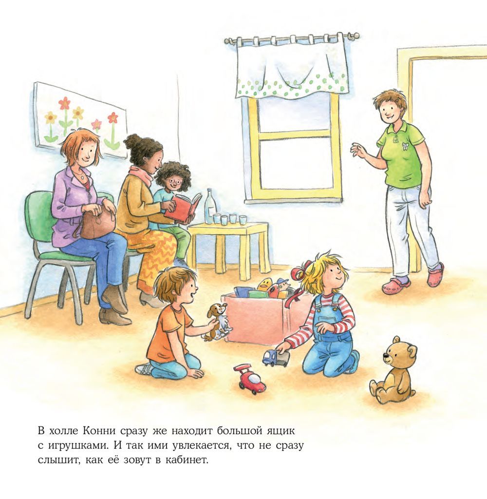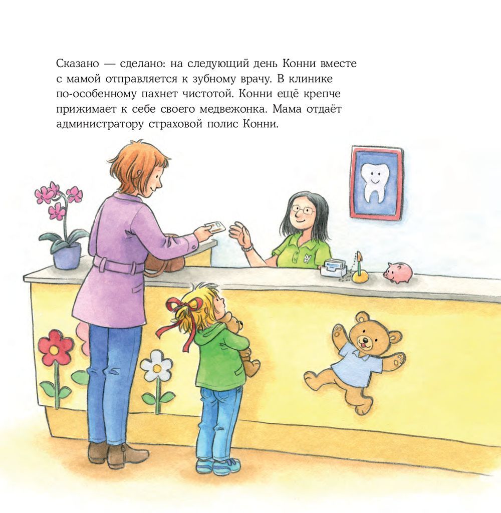 Бывает, что кариес появляется на зубах даже у самых ответственных малышей, которые чистят зубы каждый день. И тогда обязательно надо пойти к врачу, чтобы вылечить больной зуб. Вот и Конни отправляется с мамой к стоматологу. И хотя она здесь не первый раз, лечение зуба — волнительный процесс.  Вместе с Конни ваш малыш убедится, что зубной врач — это совсем не страшно, и проверит, правильно ли он чистит зубы.