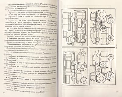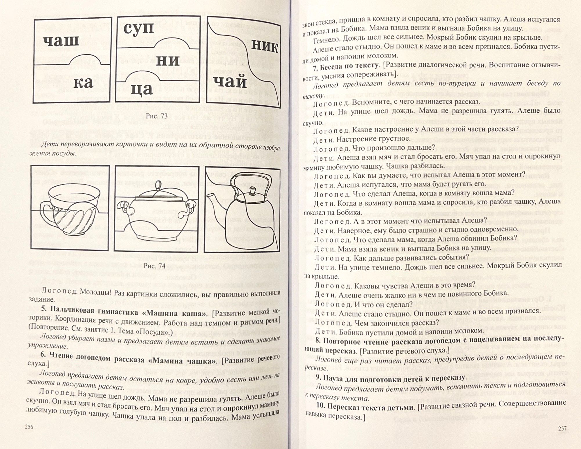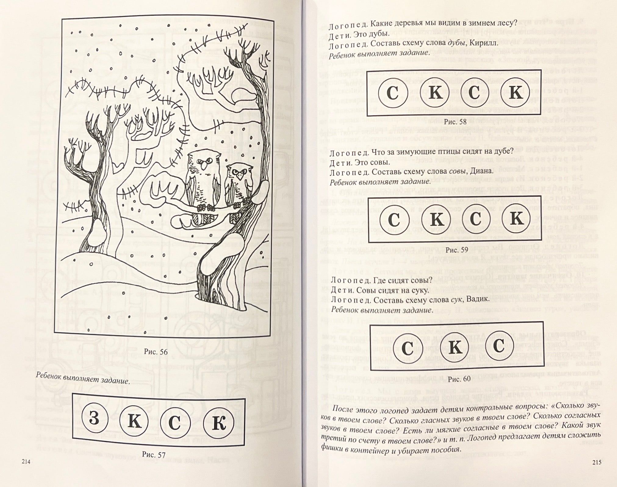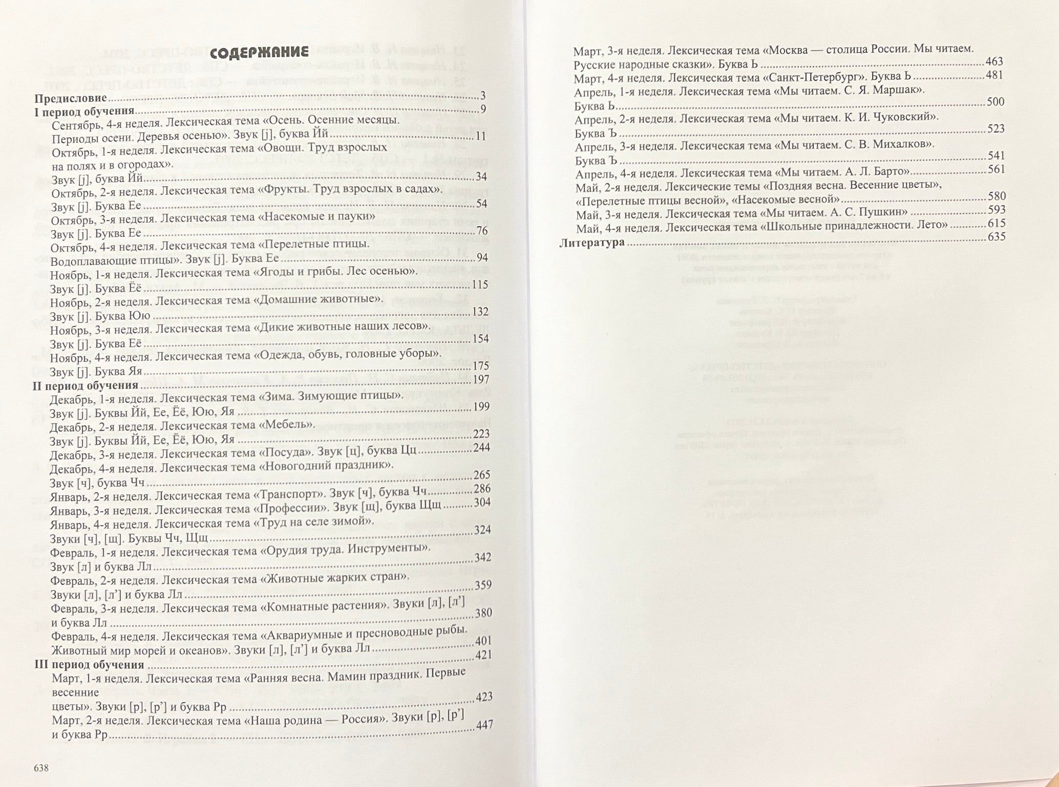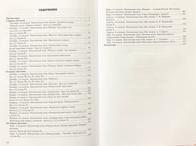 Каждое занятие состоит из десяти этапов: игры, задания и упражнения для развития общих речевых навыков, слухового и зрительного внимания и восприятия, формирования и совершенствования лексического состава языка и грамматического строя речи, развития связной речи и речевого общения, фонематических представлений и навыков звукового анализа и синтеза, мимической, артикуляционной, тонкой, общей моторики и т. д.