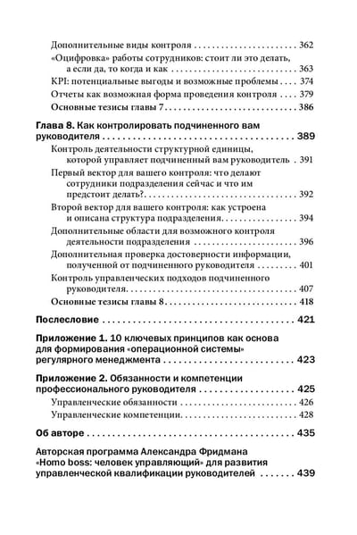Контроль — одна из трех фундаментальных управленческих процедур наряду с планированием и делегированием, от которых в наибольшей степени зависит точность управления и которые при правильном согласованном применении усиливают друг друга, давая синергетический эффект. Контролируя работу сотрудников, большинство руководителей испытывают растерянность и психологический дискомфорт: одни боятся обидеть подчиненных недоверием и испортить отношения с ними, другие не могут найти правильный подход к выполнению контрольных процедур и в результате сознательно или бессознательно уклоняются от проведения контроля, третьи считают контроль пережитком прошлого и пытаются внедрить самоуправление и прочие модные методы «современного менеджмента». Как и любой инструмент, контроль обеспечивает нужный результат лишь при правильном применении и создает проблемы, если использовать его неправильно. Это уникальное практическое руководство поможет вам построить собственную систему контроля работы подчиненных и связать контроль с планированием и делегированием в едином управленческом цикле. Вы получите огромный практический инструментарий для радикального повышения точности управления любым коллективом, от небольшой рабочей группы до целой компании. Как и в своих предыдущих книгах, ставших бестселлерами и классикой деловой литературы, Александр Фридман придерживается жесткого и прагматичного подхода к управлению, который учитывает особенности национального менталитета и российских обычаев ведения бизнеса.