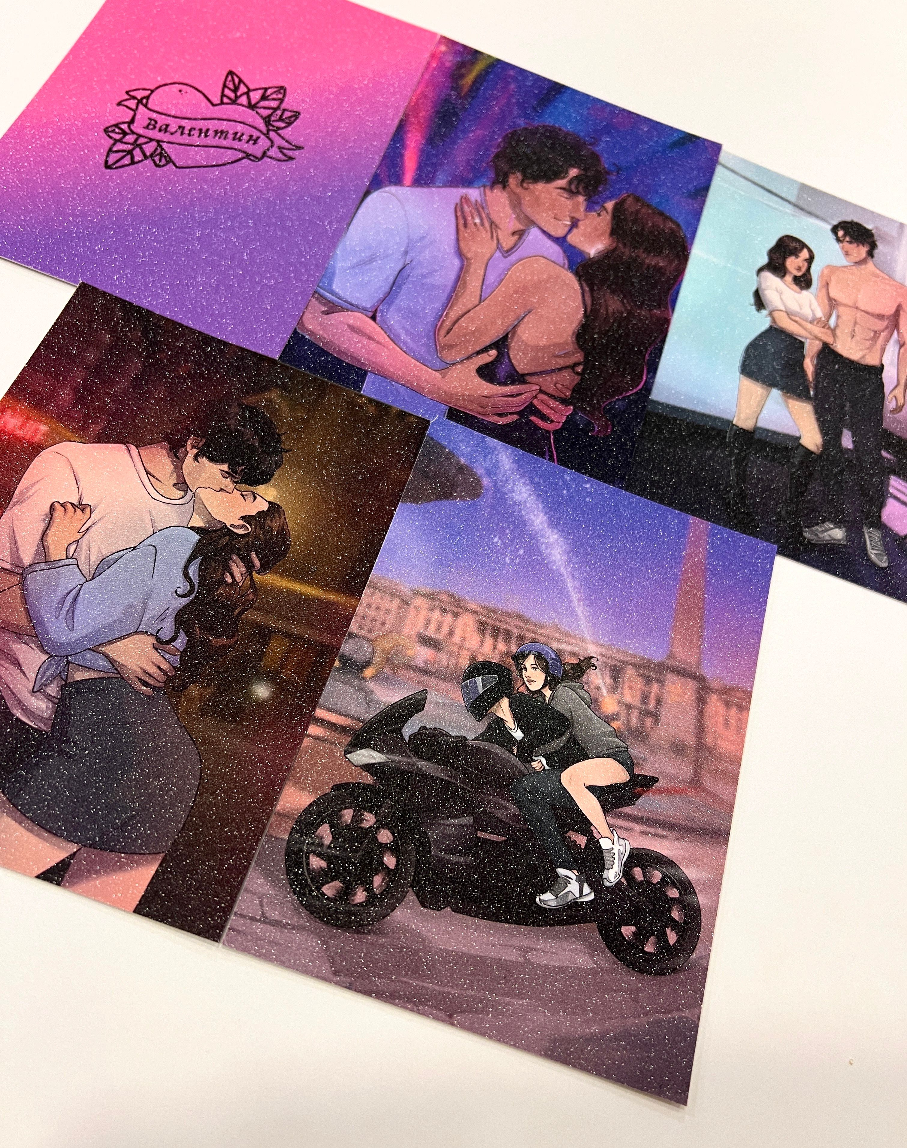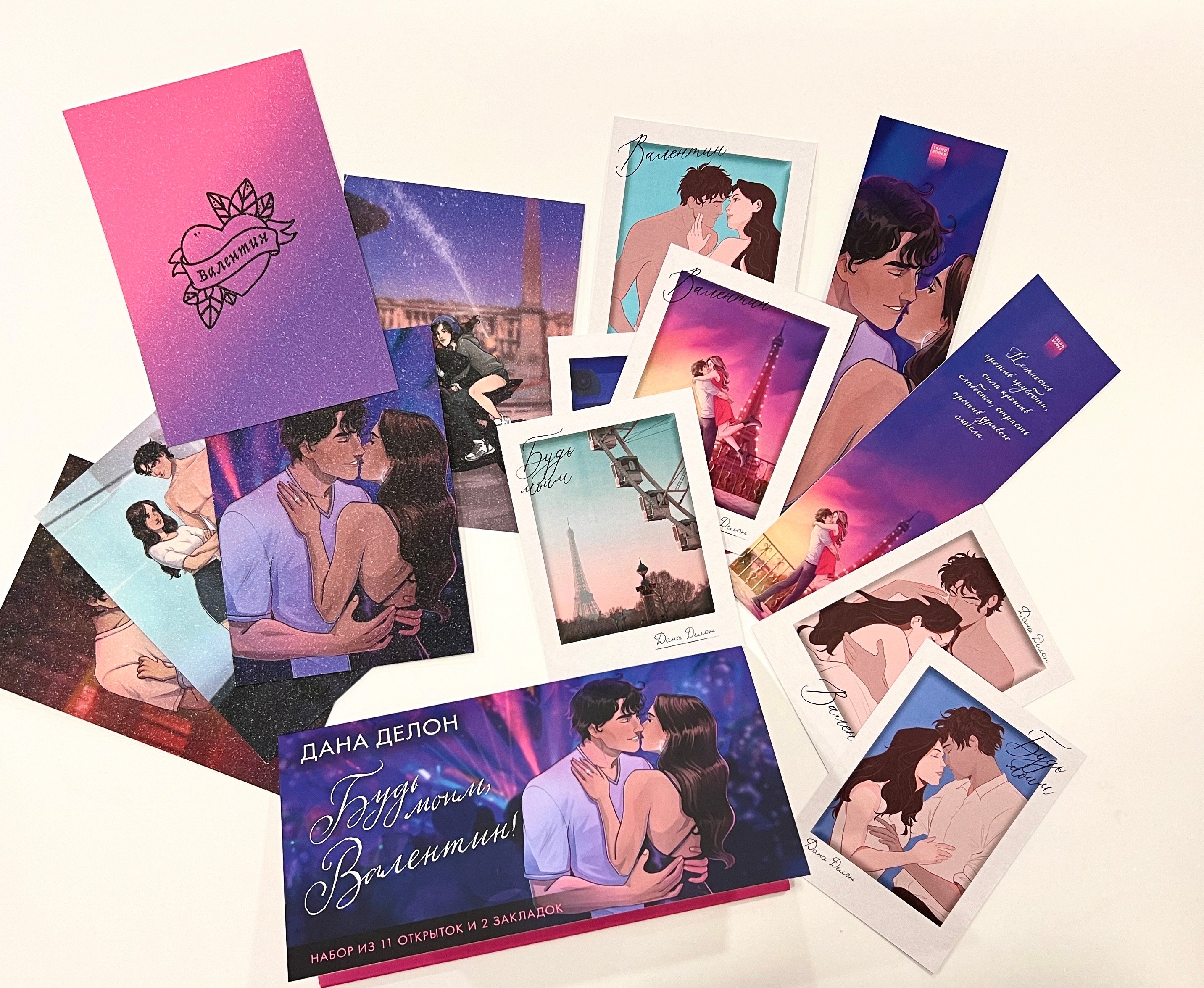 Лучшее дополнение к любимой истории — это набор с тематическим мерчом по ней! В этом конверте собраны красочные закладки и открытки из плотного картона. Мерч оформлен иллюстрациями из подарочного издания дилогии «Будь моим, Валентин» и вдохновлен героями этой истории.