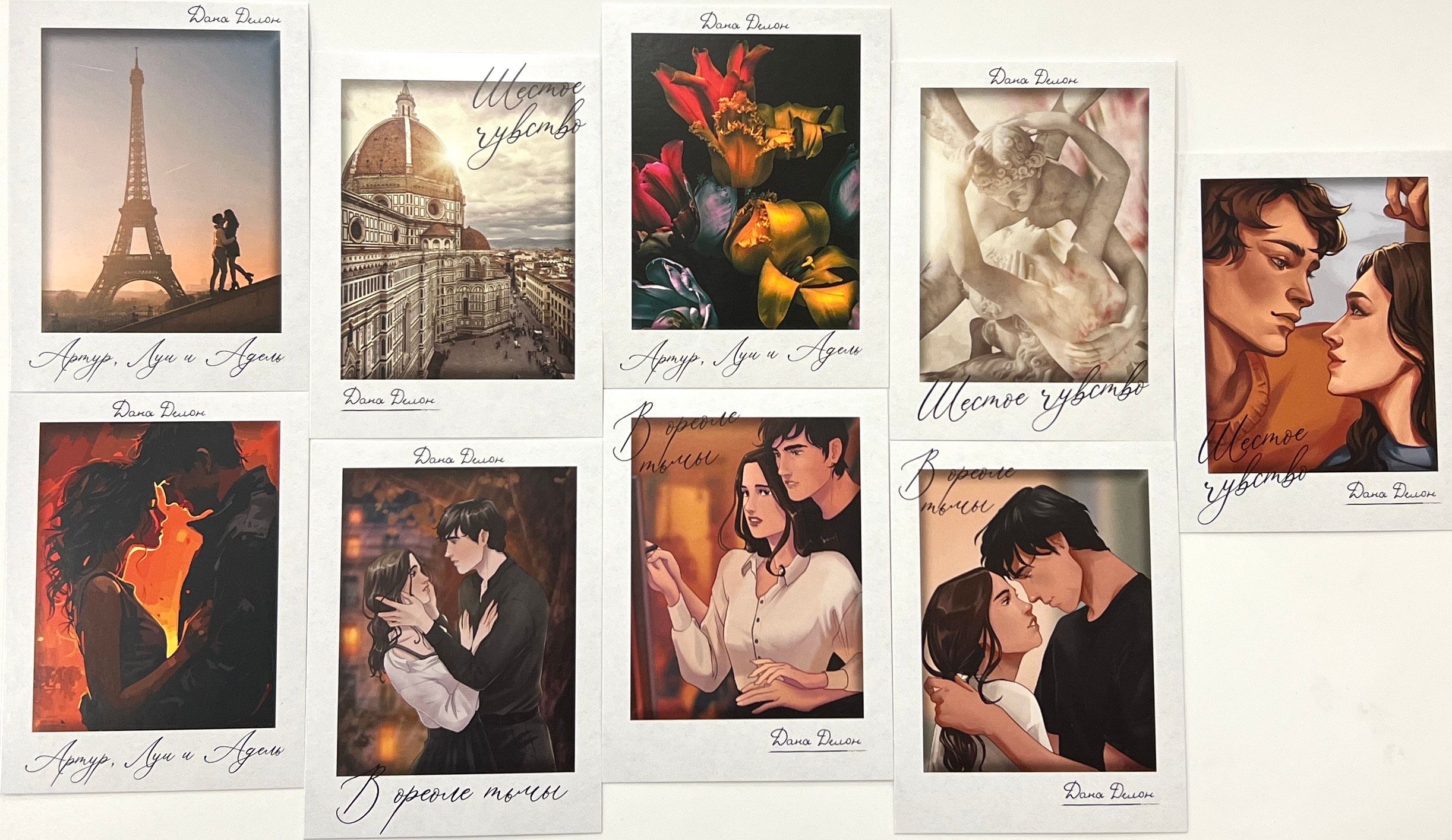 Конверт с набором по романам «В ореоле тьмы», «Шестое чувство», «Артур, Луи и Адель» Даны Делон