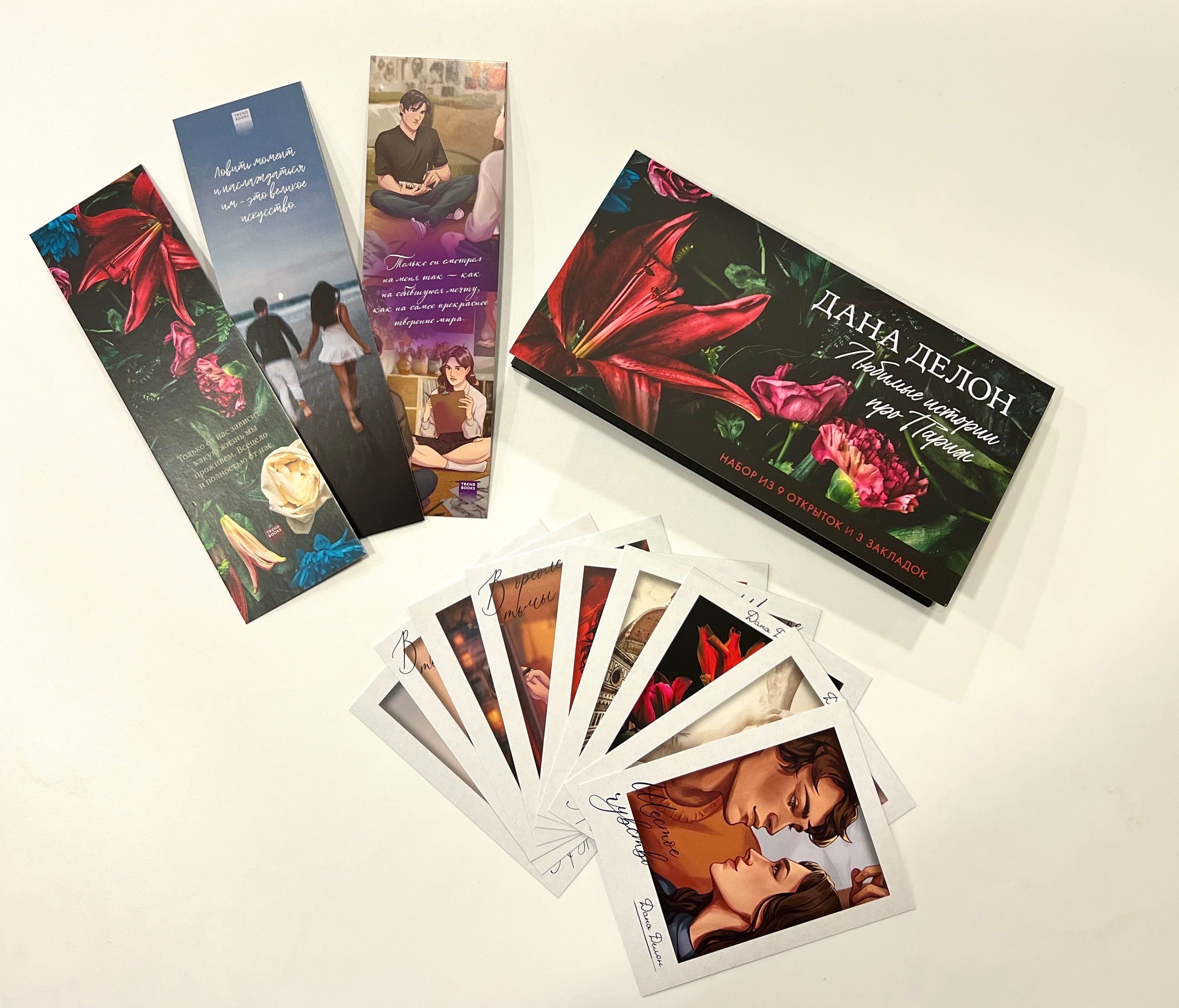 Лучшее дополнение к хорошей книге — это набор с тематическим мерчом по ней! В конверте красочные закладки и открытки. Мерч вдохновлен оформлением и героями книг Даны Делон «В ореоле тьмы», «Шестое чувство» и «Артур, Луи и Адель». Каждая открытка сделана из плотного картона, оборот открыток максимально облегченный, чтобы вы могли написать на них все что захотите. При заказе вы получите: три двусторонние закладки; девять открыток по романам с изображениями героев и их цитатами, формат — 90х120 мм. Мерч trendbooks — идеальный подарок для любого книголюба! Дарите яркий книжный мерч друзьям или собирайте собственную коллекцию и украшайте им пространство вокруг.