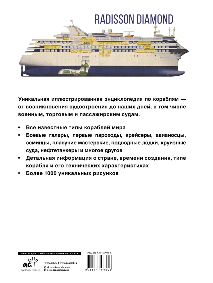 Это уникальный справочник по кораблям и подводным лодкам, в том числе военным, торговым и пассажирским судам, - от возникновения судостроения до наших дней. В книге представлены все известные типы кораблей и подводных лодок мира. Сотри цветных рисунков сопровождаются детальной информацией о стране, времени создания, типе корабря и его технических характеристиках.