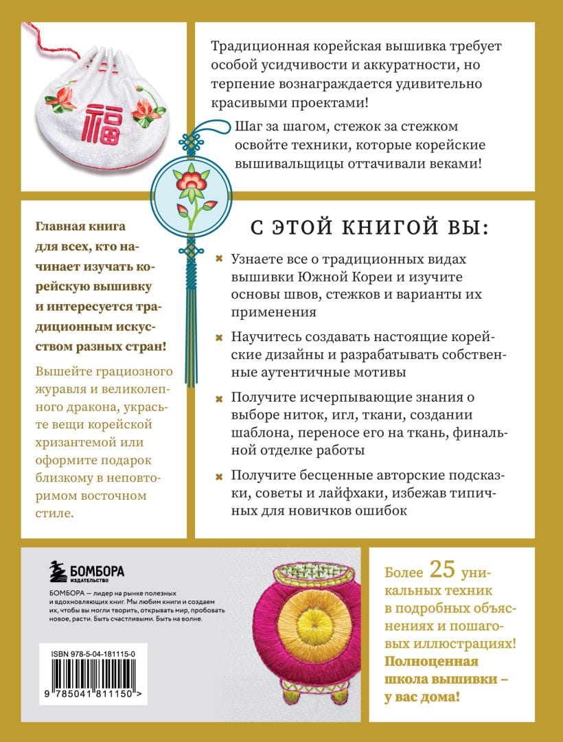 - Узнаете все о традиционных видах вышивки Южной Кореи и изучите основы швов, стежков и варианты их применения;