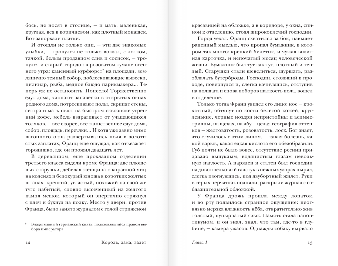 В своем втором, написанном в Берлине романе «Король, дама, валет» (1928) Владимир Набоков обращается к материалу из немецкой жизни и впервые принимается за глубокое исследование обывательской психологии, продолженное затем в «Камере обскура» и «Отчаянии». За криминальным сюжетом с любовным треугольником кроется мастерски раскрытое противостояние двух полярных образов жизни: трафаретного, бездушного, доведенного до автоматизма, и естественного, полнокровного, творческого. В условном мире реклам и модных журналов овеществляется как будто само сознание и естество молодой «дамы», главной героини книги, и наоборот, неожиданной поэзией наполняются быт и проекты ее мужа, богатого коммерсанта Драйера, — «короля» в той сложной игре, ко-