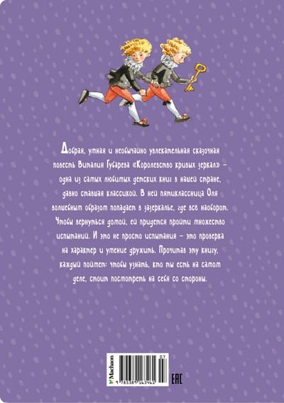 Добрая, умная и необычайно увлекательная сказочная повесть Виталия Губарева "Королевство кривых зеркал" – одна из самых любимых детских книг в нашей стране, давно ставшая классикой. В ней пятиклассница Оля волшебным образом попадает в зазеркалье, где всё наоборот. Чтобы вернуться домой, ей придется пройти множество испытаний. И это не просто испытания – это проверка на характер и умение дружить. Прочитав эту книгу, каждый поймет: чтобы узнать, кто ты есть на самом деле, стоит посмотреть на себя со стороны.