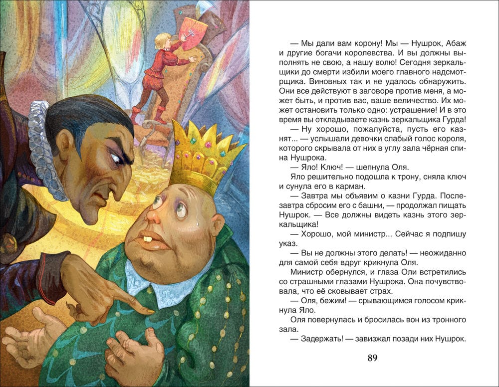 Однажды девочка Оля проходит через зеркало и попадает в очень необычную страну. В Королевстве кривых зеркал Оля встретится с точно такой же девочкой по имени Яло, которая поможет ей взглянуть на себя со стороны и исправить многие недостатки. Девочкам предстоит пройти через множество опасностей, победить коварных злодеев и выручить из беды новых друзей.