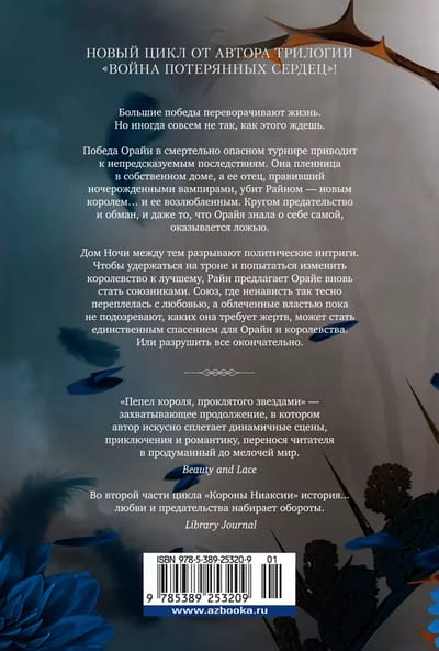 Большие победы переворачивают жизнь. Но иногда совсем не так, как этого ждешь. Победа Орайи в смертельно опасном турнире приводит к непредсказуемым последствиям. Она пленница в собственном доме, а ее отец, правивший ночерожденными вампирами, убит Райном — новым королем… и ее возлюбленным. Кругом предательство и обман, и даже то, что Орайя знала о себе самой, оказывается ложью. Дом Ночи между тем разрывают политические интриги. Чтобы удержаться на троне и попытаться изменить королевство к лучшему, Райн предлагает Орайе вновь стать союзниками. Союз, где ненависть так тесно переплелась с любовью, а облеченные властью пока не подозревают, каких она требует жертв, может стать единственным спасением для Орайи и королевства. Или разрушить все окончательно. Вторая книга из дилогии о ночерожденных вампирах — впервые на русском!