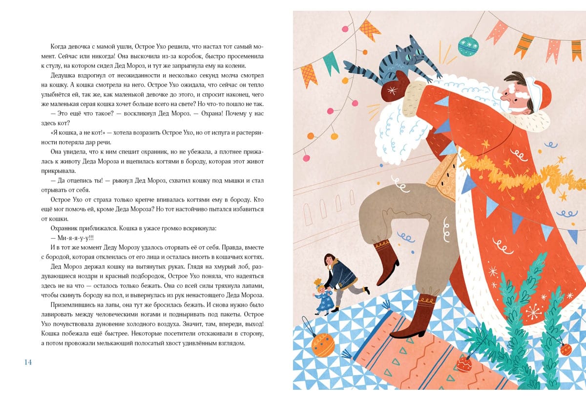 У полосатой серой кошки не было ни дома, ни хозяина, а только прозвище Острое Ухо за её великолепный слух. За два дня до Нового года кошка случайно услышала разговор мальчика Вити и его мамы про необычного волшебника — Деда Мороза. И уж очень захотела встретиться с ним. Пожалуй, потому, что у неё давно было одно заветное желание — найти себе дом, где почешут за ушком и дадут настоящее имя. Но как выглядит этот волшебник, который исполняет желания? И где его найти? Острое Ухо решила, что непременно отправится на его поиски. Однако найти настоящего Деда Мороза оказалось не так просто…