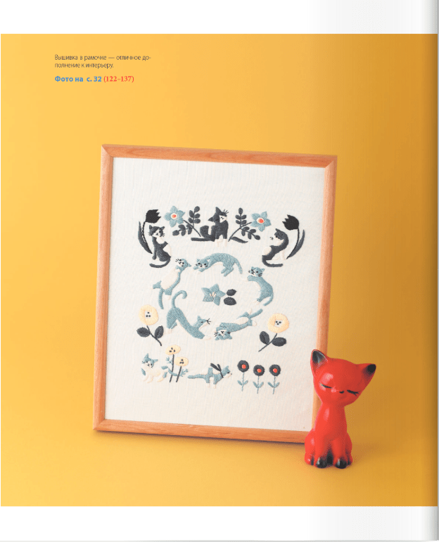 Потрясающая вышивка для всех любителей котиков! Коллекция из 380 мотивов в разных стилях и техниках в одной книге. Полноразмерные цветные схемы и цветовые карты, 15 видов стежков с подробными инструкциями - идеальное руководство, как для начинающих, так и для тех, кто давно вышивает и ищет новые мотивы. Также внутри вы найдете галерею вдохновения - готовые варианты использования сюжетов на одежде или аксессуарах — возможно, именно вы захотите вышить кошку, выглядывающую из кармана рубашки или улыбающуюся вам с домашних тапочек?