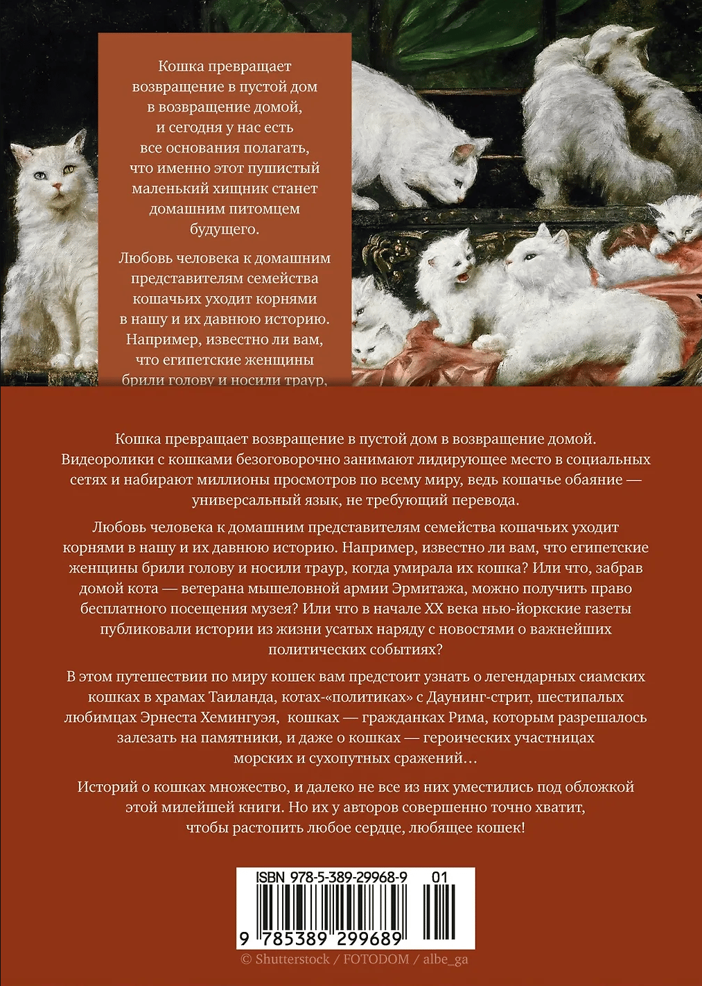 В этой книге собраны тысяча и одно приключение, выпавшие на долю удивительных существ, которые восхищают человечество вот уже десять тысяч лет. Египтяне считали кошку священным животным, а пророк Мухаммед, по легенде, отрезал рукав халата, не желая потревожить уснувшую на нем кошку. Историй о кошках множество, и далеко не все из них уместились под обложкой этой милейшей книги. Но их у авторов совершенно точно хватит, чтобы растопить любое сердце, любящее кошек!
