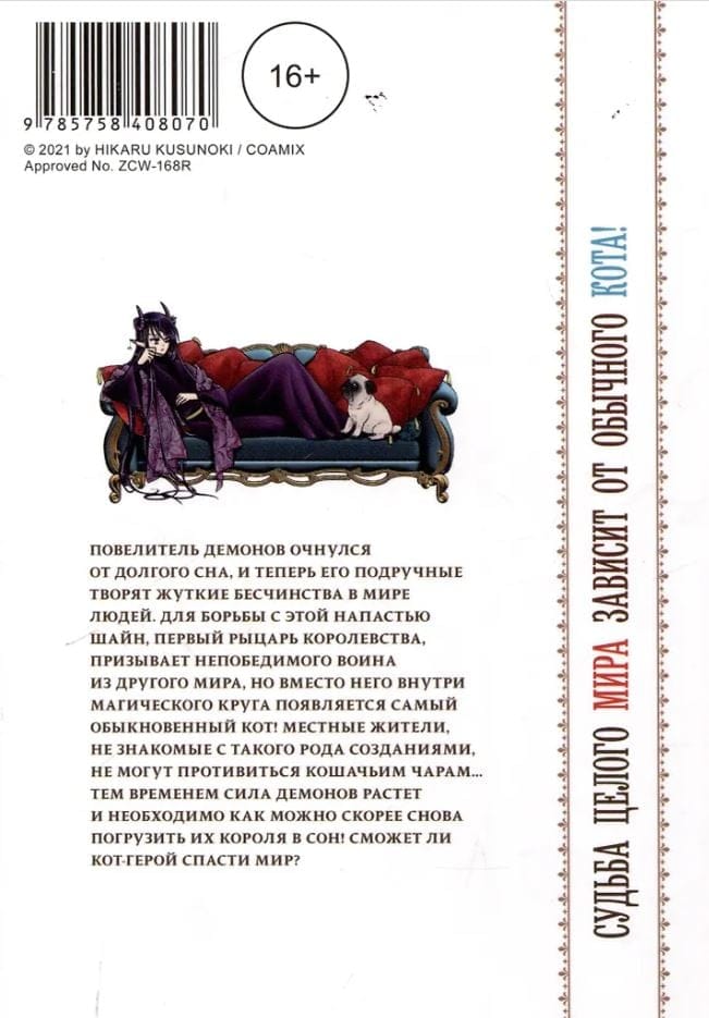 Повелитель демонов очнулся от долгого сна и теперь его подручные творят жуткие бесчинства в мире людей. Для борьбы с этой напастью Шайн, первый рыцарь королевства, призывает непобедимого воина из другого мира, но вместо него внутри магического круга появляется самый обыкновенный кот! Местные жители, не знакомые с такого рода созданиями, не могут противиться кошачьим чарам… Встречайте трогательную сказочную историю о пушистом герое, которому волей-неволей придется спасать мир.