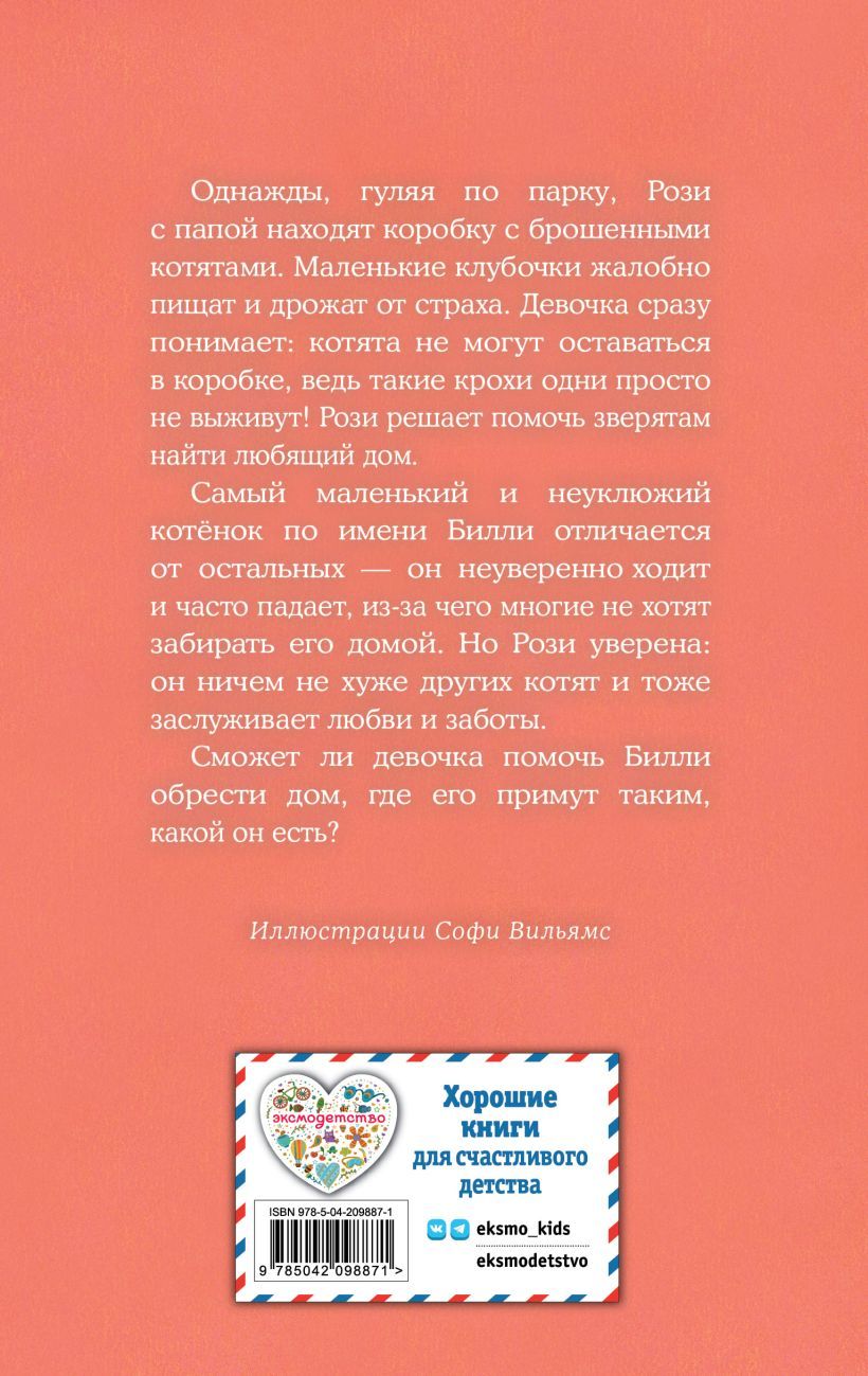 Во время прогулки в парке Рози с папой находят коробку с брошенными котятами. Девочка решает помочь малышам найти новый дом. Особенным становится самый маленький котёнок — Билли, неуклюжий и слабенький, которого никто не хочет забирать. Но Рози верит, что и он заслуживает любви. Сможет ли она помочь Билли обрести семью?