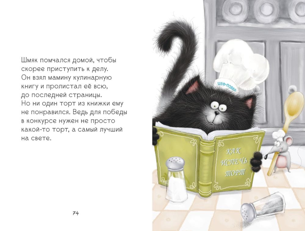 В книгу «Котенок Шмяк и Сырник. Большая книга веселых историй» вошли избранные приключения любимого героя и его лучшего друга: «Падай, снежок!», «Котенок Шмяк — рок-звезда», «Котенок Шмяк печет торт», «Давай играть» и «Спокойной ночи, Шмяк!». Идеально для начинающих читателей! Эти истории уже полюбили миллионы маленьких читателей по всему миру. Только в России совокупный тираж перевалил за 1,5 миллиона экземпляров, а тысячи малышей нашли в неунывающем котенке лучшего друга. Вы узнаете, получится ли у Шмяка слепить снежного кота, стать рок-звездой и победить в конкурсе юных кондитеров, сможет ли наш герой стать чемпионом по пряткам и подружиться со злейшим врагом. Книга «Котенок Шмяк и Сырник. Большая книга веселых историй» идеально подходит для первого чтения: крупный шрифт, простые короткие предложения не испугают малыша, а веселые сюжеты удержат внимание и интерес. Разделите пять приключений с любимым героем!