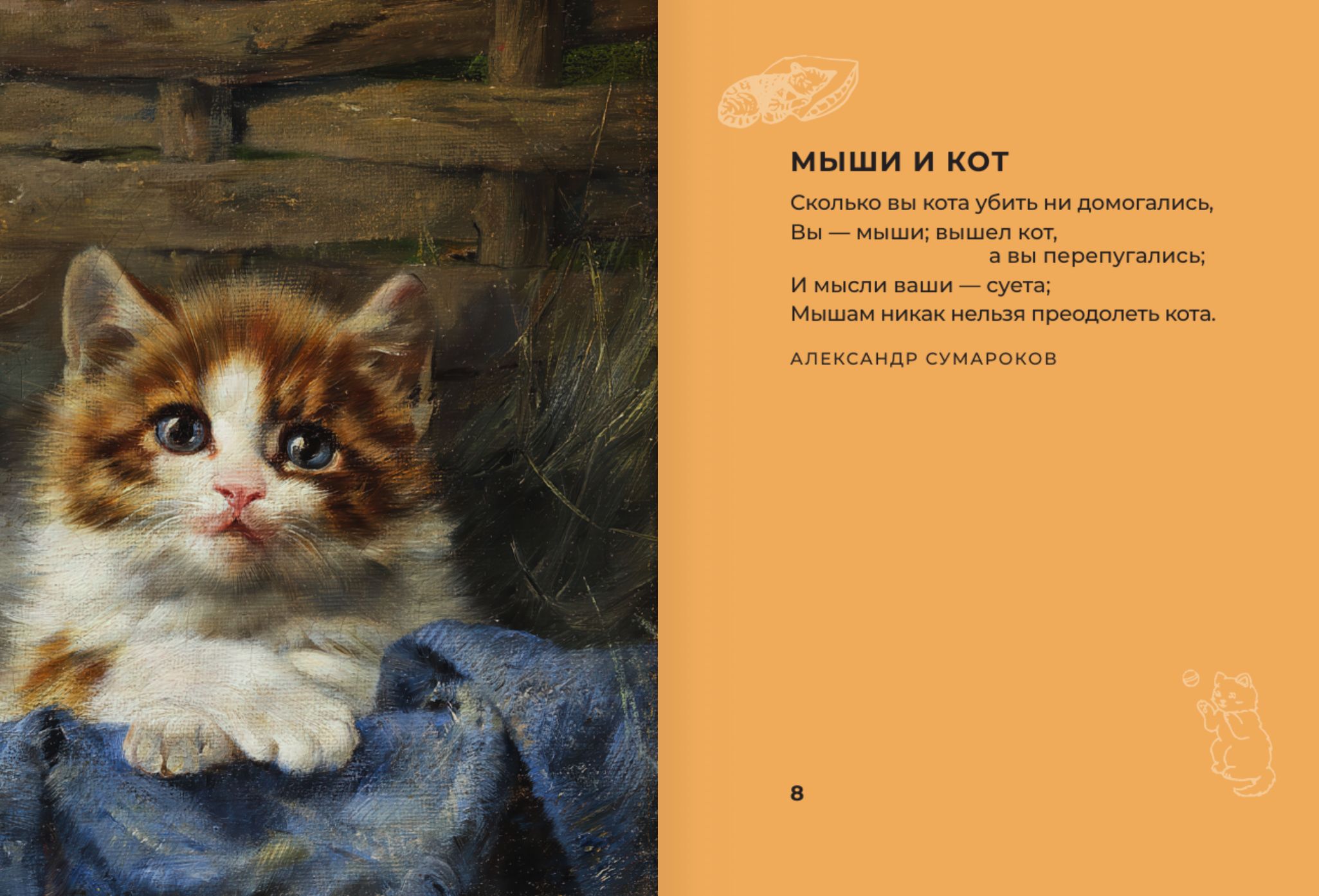 В сборник вошли лучшие стихотворения о котах и кошках великих русских поэтов. В произведениях звучит трогательная любовь к пушистым друзьям, их загадочной грации и независимости. Строки Ахматовой, Есенина, Цветаевой и многих других мастеров слова дополняют шедевры мировой живописи, которые создают особую атмосферу, превращая книгу в гармоничное сочетание слова и образа. Этот сборник станет вдохновением для ценителей русской поэзии и кошачьего очарования.