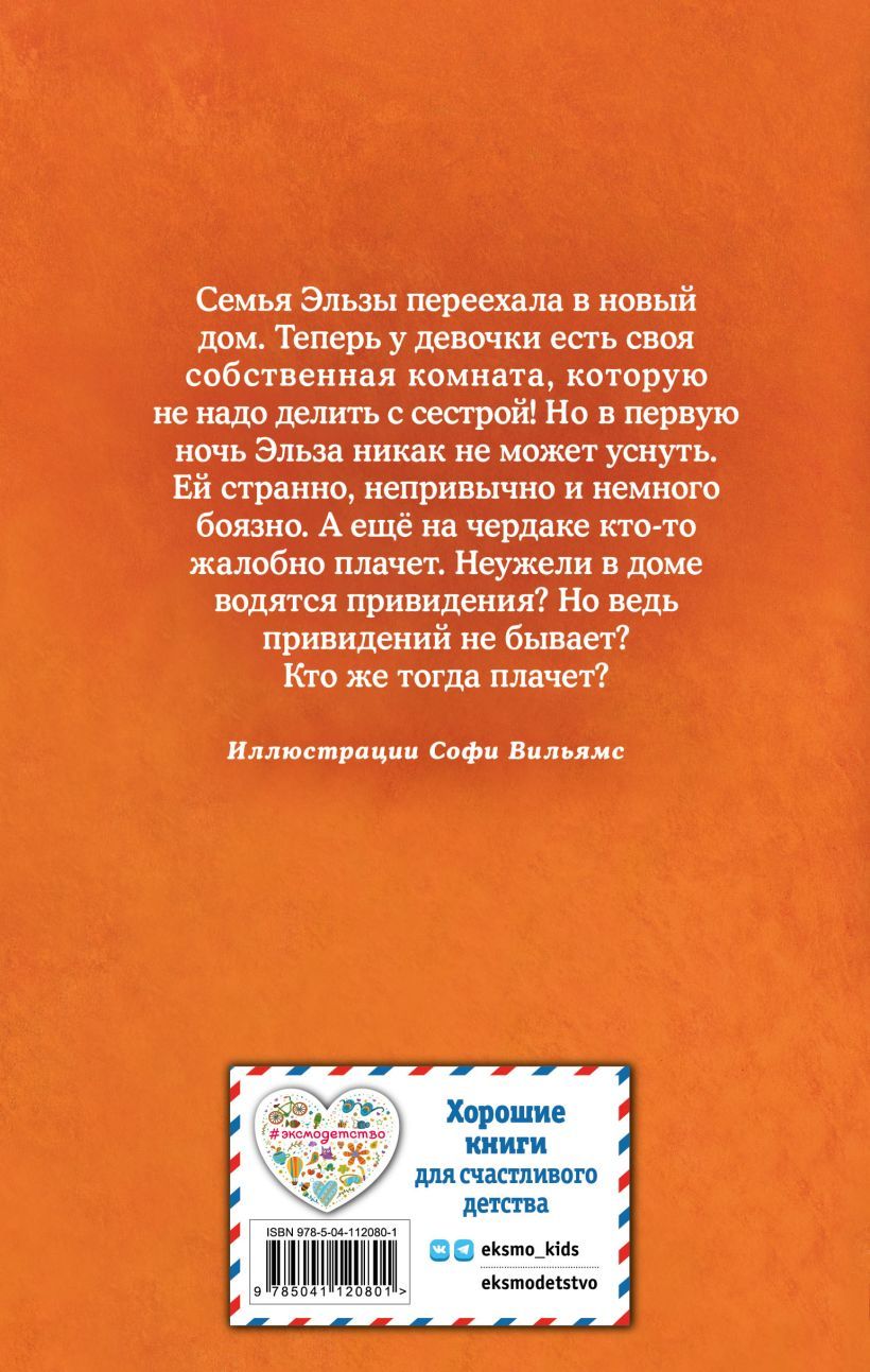 Эльза не думала, что засыпать в одиночку так страшно! А ведь она всегда мечтала о своей собственной комнате, которую не придётся делить с сестрой! Её мечта сбылась, когда их семья переехала в новый дом. Но что же там так шуршит и скрипит на чердаке!? И, хотя Эльза не самая храбрая девочка, она постарается разгадать эту загадку!
