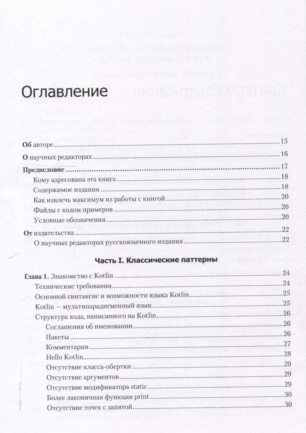 Третье издание содержит актуальные обновления Kotlin, начиная с версии 1.6, и предлагает углубленное обсуждение таких тем, как структурированная конкурентность и контекстные приемники. Книга начинается с описания базового синтаксиса Kotlin и важности паттернов проектирования, в том числе классических порождающих, структурных и поведенческих паттернов. Затем она переходит к представлению средств функционального программирования и паттернов реактивной и конкурентной обработки, включая корутины и структурированную конкурентность. Знакомясь с этими продвинутыми концепциями, вы будете совершенствовать навыки программирования на Kotlin.