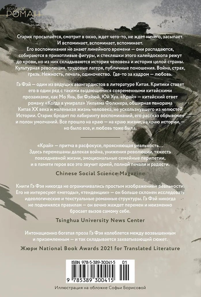 Гэ Фэй — один из ведущих авангардистов в литературе Китая. Критики ставят его в один ряд с такими выдающимися современными китайскими прозаиками, как Мо Янь, Би Фэйюй, Юй Хуа, и сравнивают его стиль с Кафкой, Борхесом и Маркесом. «Край» — китайский ответ роману «Когда я умирала» Уильяма Фолкнера, обширная панорама Китая XX века и маленькая жизнь человека, не ускользнувшего из челюстей истории. Старик бродит по лабиринту своих воспоминаний, говорит, говорит, его рассказ обрывочен и полон умолчаний. Все прошло на краю — на краю жизни, на краю истории, — но все было, и любовь тоже была.