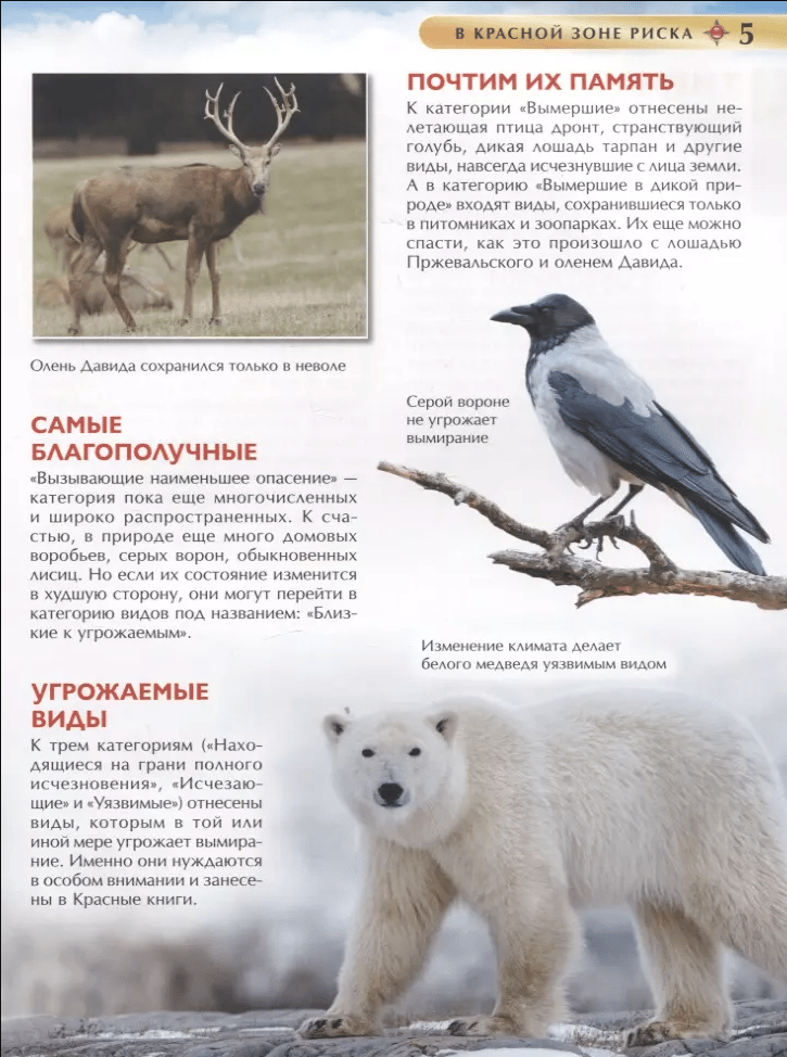 Красные книги нужны для сохранения живой природы. В них занесены виды, находящиеся под угрозой исчезновения. Для того чтобы сохранить разнообразие животных, растений и грибов, государства занялись спасением на своих территориях вымирающих видов. Каждый из нас должен бережно относиться к окружающему миру, люди в ответе за планету, на которой живут. Поэтому так важна информация о сокращении численности любых живых существ на Земле. В книге дана не только информация о проблемах, вызвавших исчезновение тех или иных животных, но и интересные факты об их жизни и среде обитания.