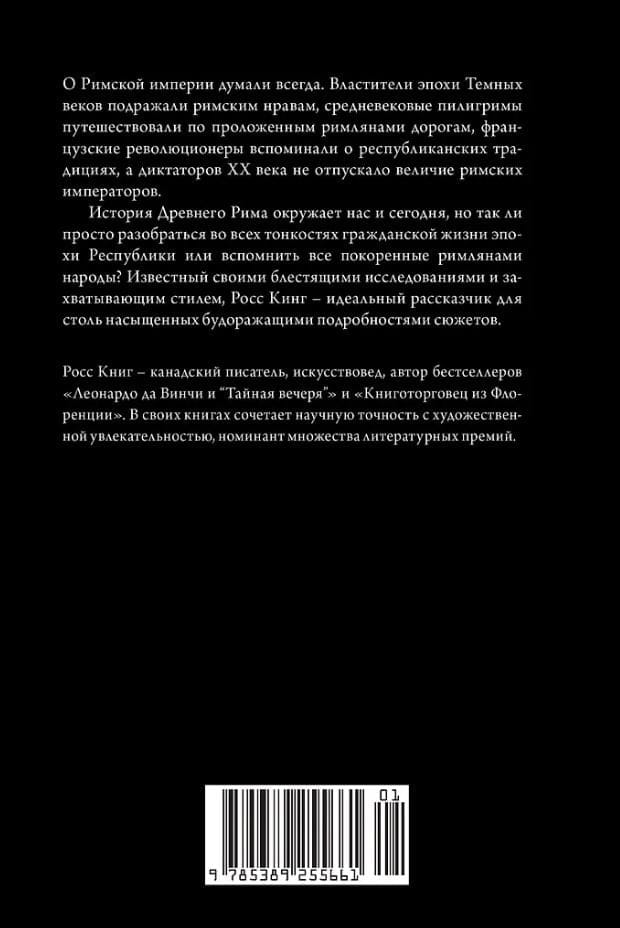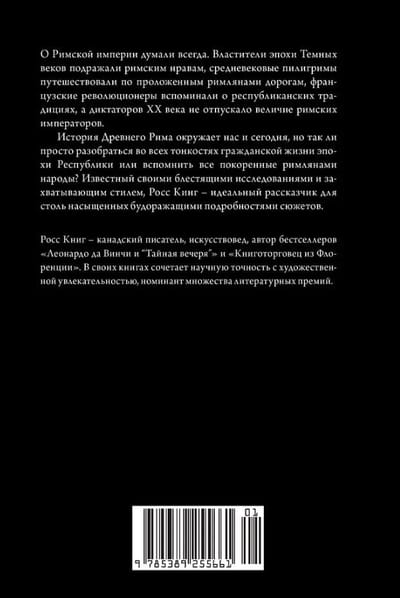 История Древнего Рима насчитывает 13 веков. Легендарное государство пало в 476 году, когда был свергнут последний римский император, которого по горькой иронии звали так же, как и основателя города. Однако история Рима на этом не закончилась. Римская культура, вобрав в себя достижения других великих держав, на многие столетия обеспечила средневековые Запад и Восток знаниями во всех областях жизни. Знаменитый исследователь Росс Кинг проводит читателя по запутанной и драматической истории вечного города, давшего начало могущественной империи, в которой коварство и жестокость соседствуют с величием и подвигами.
