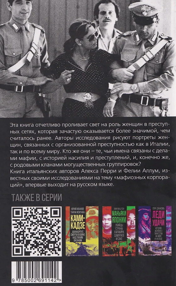 Эта книга отчетливо проливает свет на роль женщин в преступных сетях, которая зачастую оказывается более значимой, чем считалось ранее. Авторы исследования рисуют портреты женщин, связанных с организованной преступностью как в Италии, так и по всему миру. Кто же они – те, чьи имена связаны с делами мафии, с историей насилия и преступлений, и, конечно же, с родовыми кланами могущественных группировок? Книга итальянских авторов Алекса Перри и Фелии Аллум, известных своими исследованиями на тему «мафиозных корпораций», впервые выходит на русском языке.