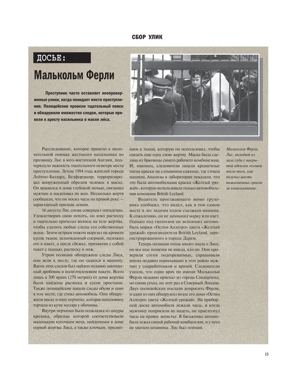 В этой книге ученый-исследователь, автор статей и книг по криминалистике и судмедэкспертизе Брайан Иннес собрал самые интересные дела, демонстрирующие все многообразие и сложность способов поимки особо опасных преступников, а также рассказывает об истории зарождения и развития различных отраслей криминалистики. Тед Банди, Джон Уэйн Гейси, Ричард Рамирес (Ночной охотник), Ли Харви Освальд, Альберт де Сальво (Бостонский душитель), Тед Качинский (Унабомбер) и многие другие серийные убийцы разбираются в этой книге с точки зрения тактики их поимки. Текст иллюстрирован более чем 200 уникальными фотографиями из следственных дел, многие из которых показаны впервые.