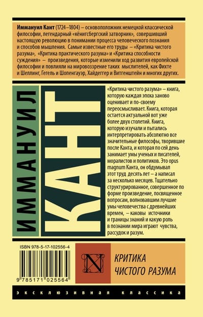 Критика чистого разума – книга, которую каждая эпоха заново оценивает и по-своему переосмысливает. Книга, которая остается актуальной вот уже более двух столетий. Книга, которую изучали и пытались интерпретировать абсолютно все значительные философы, творившие после Канта, и которая по сей день занимает умы ученых и писателей, моралистов и политиков. Это opus magnum Канта, он обдумывал этот труд десять лет – а написал за несколько месяцев. Тщательно структурированное, совершенное по форме произведение, посвященное вопросам, волновавшим лучшие умы человечества с древнейших времен, – каковы источники и границы знаний и какую роль в познании мира играют чувства, рассудок и разум.