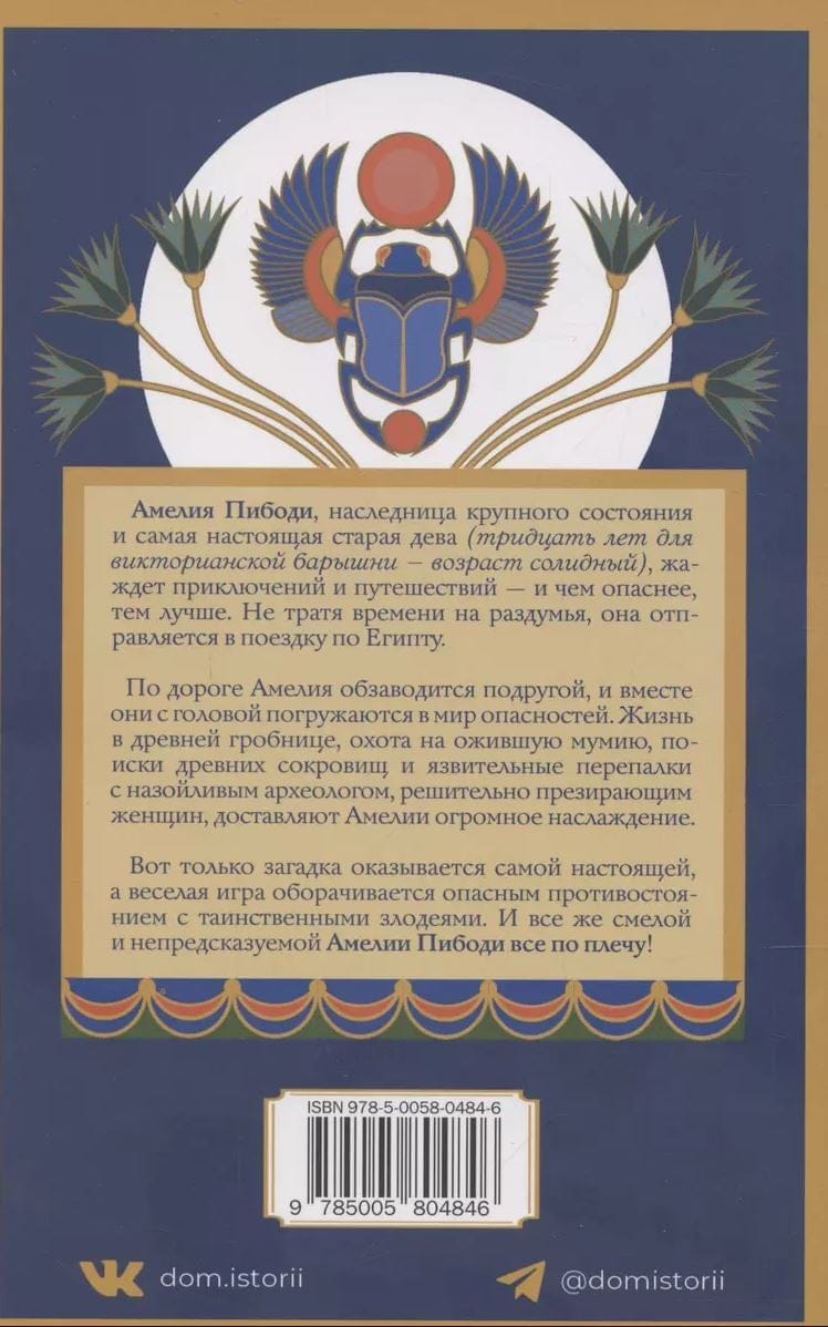Амелия Пибоди, наследница крупного состояния и самая настоящая старая дева (тридцать лет для викторианской барышни — возраст солидный), жаждет приключений и путешествий — и чем опаснее, тем лучше. Не тратя времени на раздумья, она отправляется в поездку по Египту.