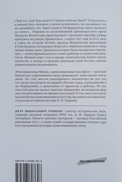 В период между Февральской и Октябрьской революциями небольшой город на острове Котлин сыграл важную историческую роль. И в мае, когда возникла «кронштадтская республика», и во время «июльских дней», в которых отряд кронштадтцев принял активное участие, и в октябре, когда матросы и солдаты местного гарнизона решительно поддержали большевиков, Кронштадт и его жители внесли заметный вклад в российскую (и мировую) историю. Предлагаемая вниманию читателя книга посвящена не только этим событиям, но и тому, чем жил город на Котлине в течение 1917 года: мы проследим за успехами и провалами городской милиции, увидим, как относились жительницы Кронштадта к женскому равноправию, посмотрим на горожан, посещавших и революционные митинги, и богослужения в торжественном Морском соборе, и концерт Федора Шаляпина.