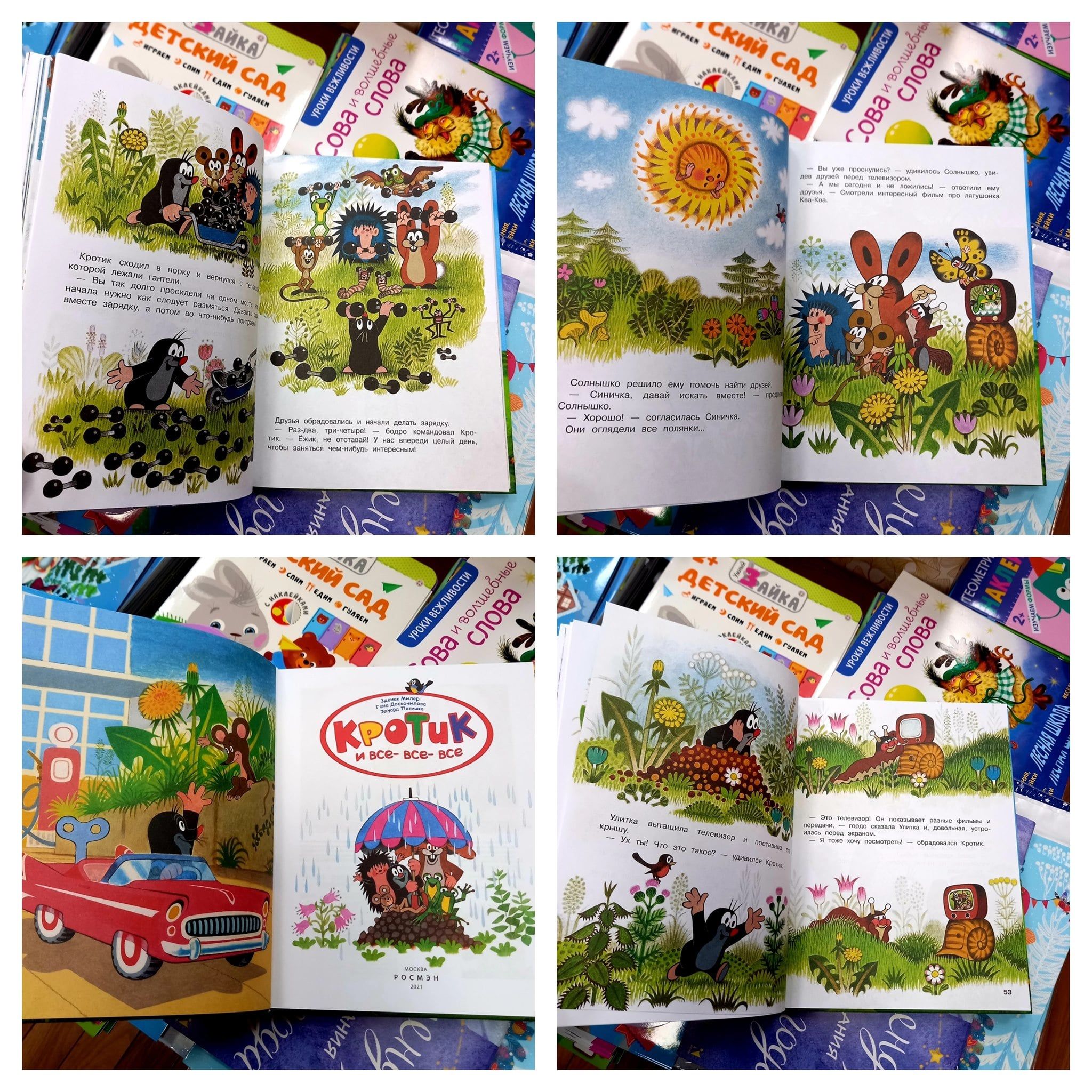 Самое полное собраний историй о знаменитом Кротике, созданном чешским художником-аниматором Зденеком Милером. Кротик - добрый и трогательный персонаж чешских мультфильмов, который знаком миллионам детей и взрослых во всем мире. А теперь он поселился и на страницах наших книг для самых маленьких. В сборник «Кротик и все-все-все» вошли истории «Кротик и зелёная звезда», «Кротик и автомобильчик», «Кротик-художник», «Кротик и телевизор», «Кротик и орёл», «Кротик и зонтик», «Кротик и Рождество». Истории «Кротик и зелёная звезда», «Кротик-художник» и «Кротик и Рождество» издаются на русском языке впервые. Яркие и красочные иллюстрации З. Милера подарят малышам радость встречи с любимыми персонажами мультфильмов о Кротике.