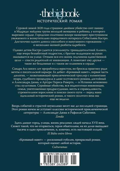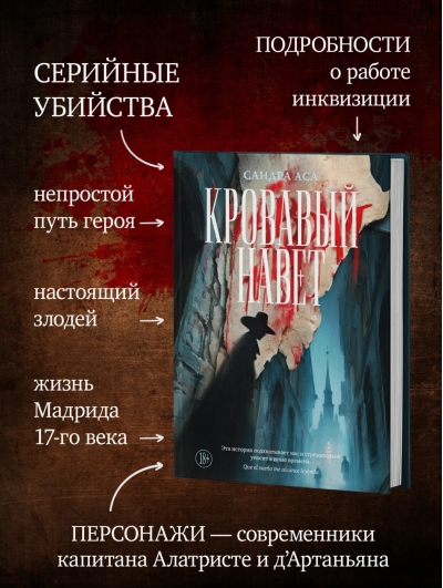 Сандра Аса много лет проработала юристом, но бросила практику ради мечты о писательской карьере. Ее дебют «Кровавый навет», первая часть дилогии, — захватывающий приключенческий триллер с элементами нуара, судебного процедурала и даже плутовского романа, достойный и Александра Дюма, и Артуро Переса-Реверте, — в Испании мгновенно стал культовым. Серийные убийства, вся подноготная инквизиции, семья, уничтоженная предрассудками, месть и справедливость, стремительное взросление и поиски своего пути — перед нами идеальный исторический роман, и такого золотого века мы еще не видели.