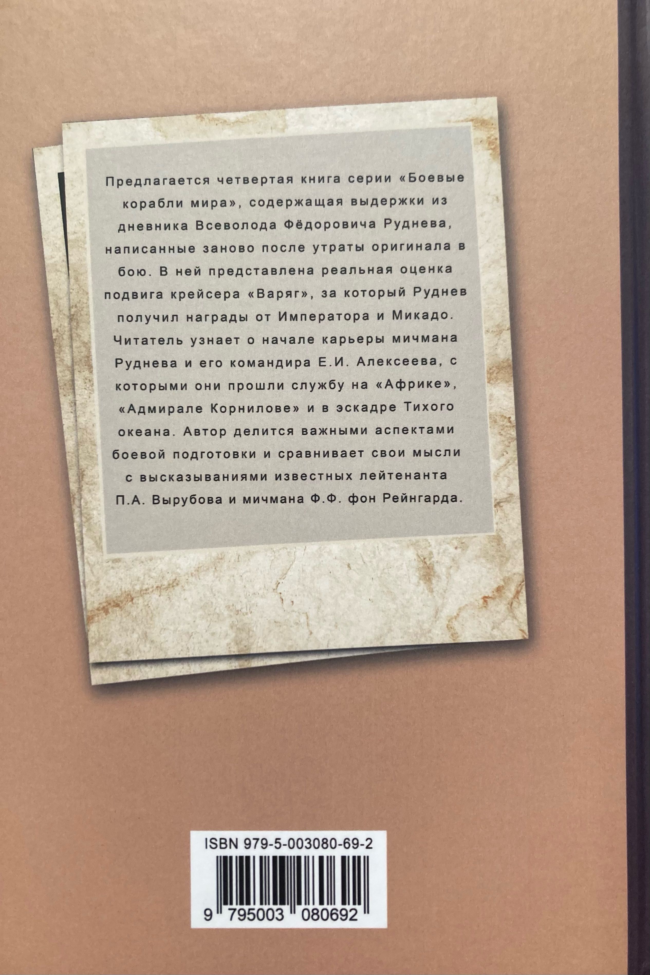 В книге автор рассказывает о том, что он считает важным для себя и считает нужным поделиться с другими. Например, о боевой подготовке корабля, на котором он прослужил четыре года. При желании можно даже сравнить мысли мичмана В.Ф. Руднева и высказывания уже известных читателям лейтенанта П.А. Вырубова и мичмана Ф.Ф. фон Рейнгарда.