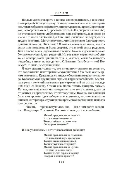 Евгения Гинзбург, историк и журналист, мать знаменитого писателя Василия Аксенова, была репрессирована в 1937 году, провела десять лет в тюрьмах и колымских лагерях и восемь лет в магаданской ссылке, а в 1955 году ее дело было прекращено за отсутствием состава преступления. Но даже во времена оттепели автобиографический роман «Крутой маршрут», в котором Гинзбург рассказала о своей страшной судьбе, не мог выйти в СССР: он был издан только в годы перестройки, став одним из самых известных свидетельств о преступлениях сталинского режима — причем Гинзбург, которая до ареста была верным приверженцем коммунистического учения, не снимает и с себя вину за происходившее. Умение сдержанно, но психологически точно передать ощущения «безумия и ужаса», надежд и полного отчаяния, правдиво показать сцены жестокости и самопожертвования, проявлений трусости и храбрости — все это позволяет назвать «Крутой маршрут» выдающимся литературным произведением. Главная же ценность романа в том, что он учит сохранять мужество и достоинство, помогает избавиться от «великого Страха», который способен разрушать и судьбы, и жизни целого поколения.